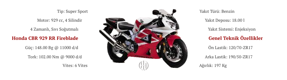 “Honda CBR 929 RR Fireblade” için blog yazan ilk kişi siz olun