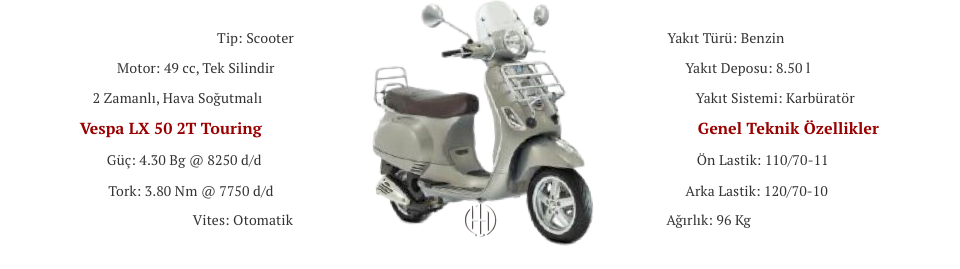 “Vespa LX 50 2T Touring” için blog yazan ilk kişi siz olun